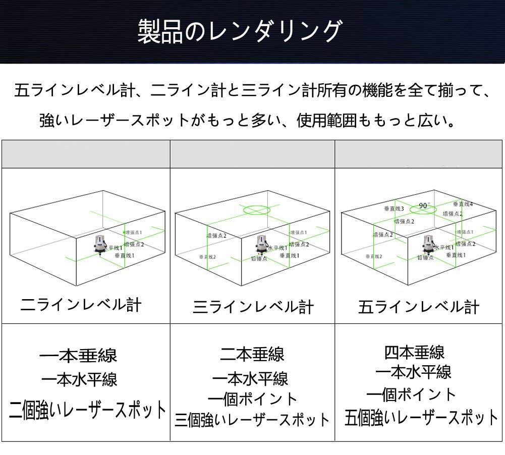 自動調整機能:本体の傾きを3°以内に調整することができます。360度の三脚シャーシを回転させて、線の位置は任意で調整することができます。 誤差を減らし、仕事効率を向上させます スイッチの機能:「H」水平線、「V」垂直線、軽量コンパクトで使い易く、水平ライン、 垂直ライン、クロスラインなどが効率良く出せます。 自動調整機能:本体の傾きを3°以内に調整することができます。360度の 三脚シャーシを回転させて、線の位置は任意で調整することができます。 誤差を減らし、仕事効率を向上させます 本体重量:1kg 本体尺寸 220*160*250 mm 付属品:リチウム電池、ケース(材質、形状変更可能性あり)、取扱説明書(英語) レーザー安全基準:クラス2 アウトレット品。 DIYには最適程度であれば問題なく使用可能。簡単なブロック積みや、物の水平をだすのに大変便利 標準付属品:本体 充電器、リチウム電池。ケース、ストラップゴーグル センサーレベリングシステムHIA垂直レーザー&水平レーザー:635 nm ダウンポイント:650 nm 波長半径:約10 m 作動距離レベリング範囲放出角度約±4°約110°水平+ 1mm / 10m精度垂直精度+ 1mm / 5mダウンポイント精度+ 1mm / 1.2m垂直精度Zenith Accurac電源+ 1mm / 3m 4.5V(3AAバッテリー)動作温度-10°C- + 45°C連続約8時間110x190mm動作時間寸法1.2Kg (*説明書(英)の翻訳) ケース、充電器、リチウム電池、ストラップ ゴーグル (乾電池も可*付属しません) 化粧箱無 同梱 まとめ取引不可です。弊社への納品の際、画像2枚目の手提げケースとは別の種類の手提げケースの場合もあります
